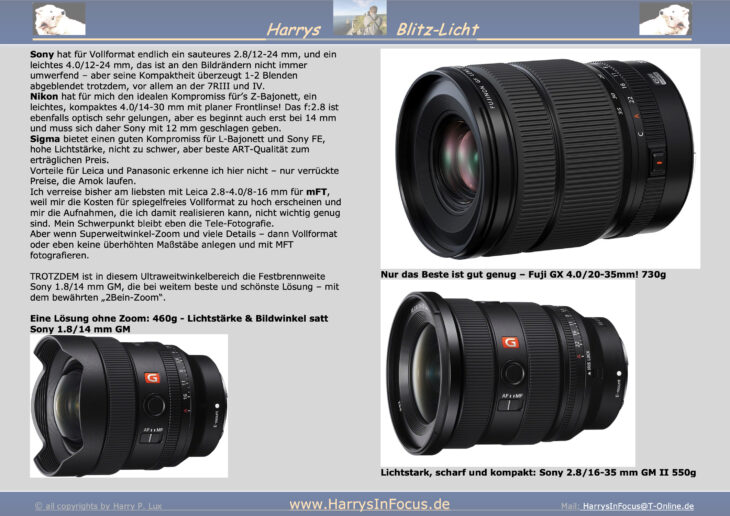 Deshalb fragen Sie bitte gezielt per E-Mail an, ich besorge mir auch weiterhin die spannendsten Objektive und sammle Erfahrungen und bin auf dem neuesten Stand.