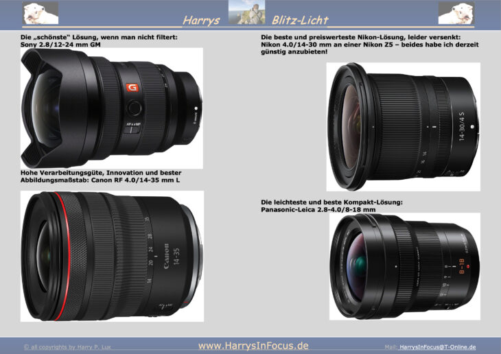 Ein Gedanke ist aber bei diesen Techniken sehr wichtig, man braucht dazu das optimale Objektiv. Und ein 2.8/14-24 mm, 2.8/15-35 mm, 2.8/12-24 mm wird den höchsten Anspruch selten erfüllen.
